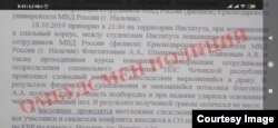 По информации "Интерфакса", конфликт между двумя слушателями института МВД в Нальчике произошел вечером 18 октября: "Они подрались, их развели, но потом драка продолжилась, и когда их разняли, полицейский из Карелии был мертв". Чуть позже стало известно, что погибший служил в отряде спецназначения "Гром" МВД Карелии, а убивший его – в патрульно-постовой службе имени А. Кадырова МВД Чечни. Следственное управление Кабардино-Балкарской Республики возбудило уголовное дело по статье "Причинение смерти по неосторожности". Имена обвиняемого и других участников потасовки не разглашаются.