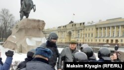 В Петербурге на Сенатской площади на пикетах против поправок в Конституцию задерживают активистов, сообщает корреспондент Север.Реалии.