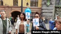 Как передает корреспондент Север.Реалии, участникам акции предлагают открытки с голубями, на них они пишут слова поддержки и складывают в общий ящик. Тем, кто подписал открытку, дают шарики синего и зеленого цветов (цвета флага Хабаровского края) и маленькую табличку с голубем. Некоторые подписываются под общим иском против поправок к Конституции.