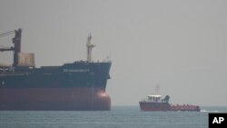 Согласно заявлению менеджера судна, они запросили разрешение на стоянку, чтобы перегрузить селитру на другое судно и провести ремонт, но экипаж все еще ожидает ответа от британских властей.