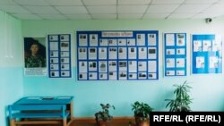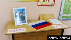 Год назад в России запустили проект "Парта героя" – это когда в школах на партах пишут информацию о солдатах, погибших в военных конфликтах. В Куратове тоже поставили такую – вынесли старый стол в фойе школы и поставили под портретом Семена Тутринова.